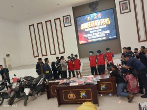 Surabaya, Liputan Warta Jatim // 5 Desember 2025 — Kepolisian berhasil mengamankan delapan tersangka dalam kasus penganiayaan dan perampasan sepeda motor yang terjadi di sebuah lapangan desa pada akhir pekan lalu. Dari delapan tersangka yang ditetapkan, lima di antaranya merupakan pelaku dewasa dan telah dihadirkan dalam konferensi pers. Sementara itu, tiga pelaku lainnya tidak ditampilkan karena masih berstatus anak di bawah umur.