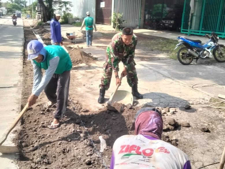 Boyolali – Liputan Warta Jatim, Dalam mendukung kelancaran mobilitas masyarakat di wilayah, Batiwanwil Koramil 13/Nogosari Kodim 0724/Boyolali Pelda Joko Wibowo bersama warga bergotong royong melaksanakan Karya Bakti perbaikan jalan.