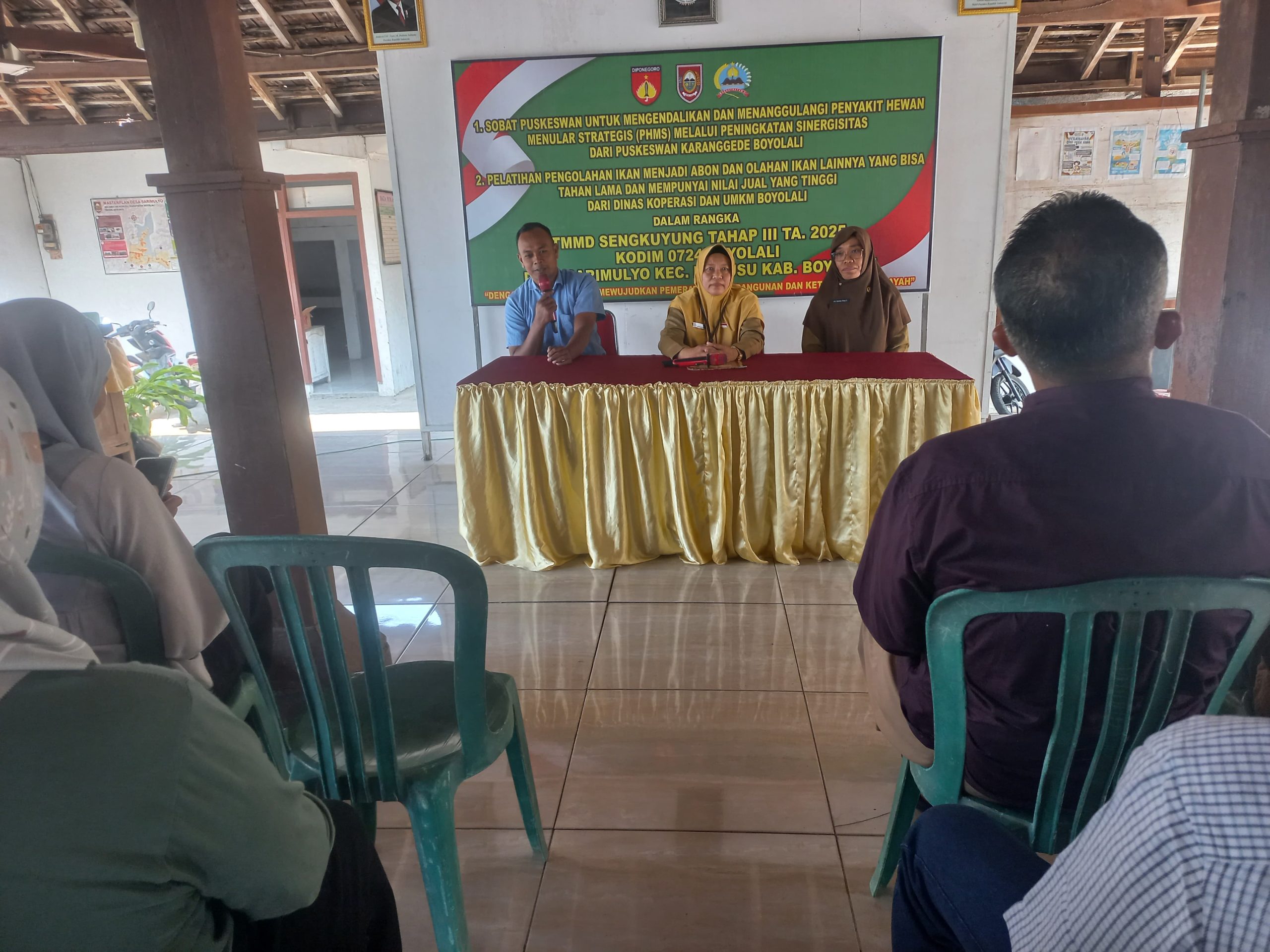 Boyolali – Liputan Warta Jatim, Untuk mencegah penyebaran penyakit menular pada hewan ternak, Satgas TNI Manunggal Membangun Desa (TMMD) Sengkuyung Tahap III Tahun 2025 Kodim 0724/Boyolali bersama Dinas Peternakan (Disnak) Kabupaten Boyolali melalui Puskeswan Karanggede menggelar sosialisasi pengendalian dan penanggulangan penyakit hewan menular. Kegiatan berlangsung di Aula Balai Desa Sarimulyo, Kecamatan Kemusu, Senin (11/08/25).