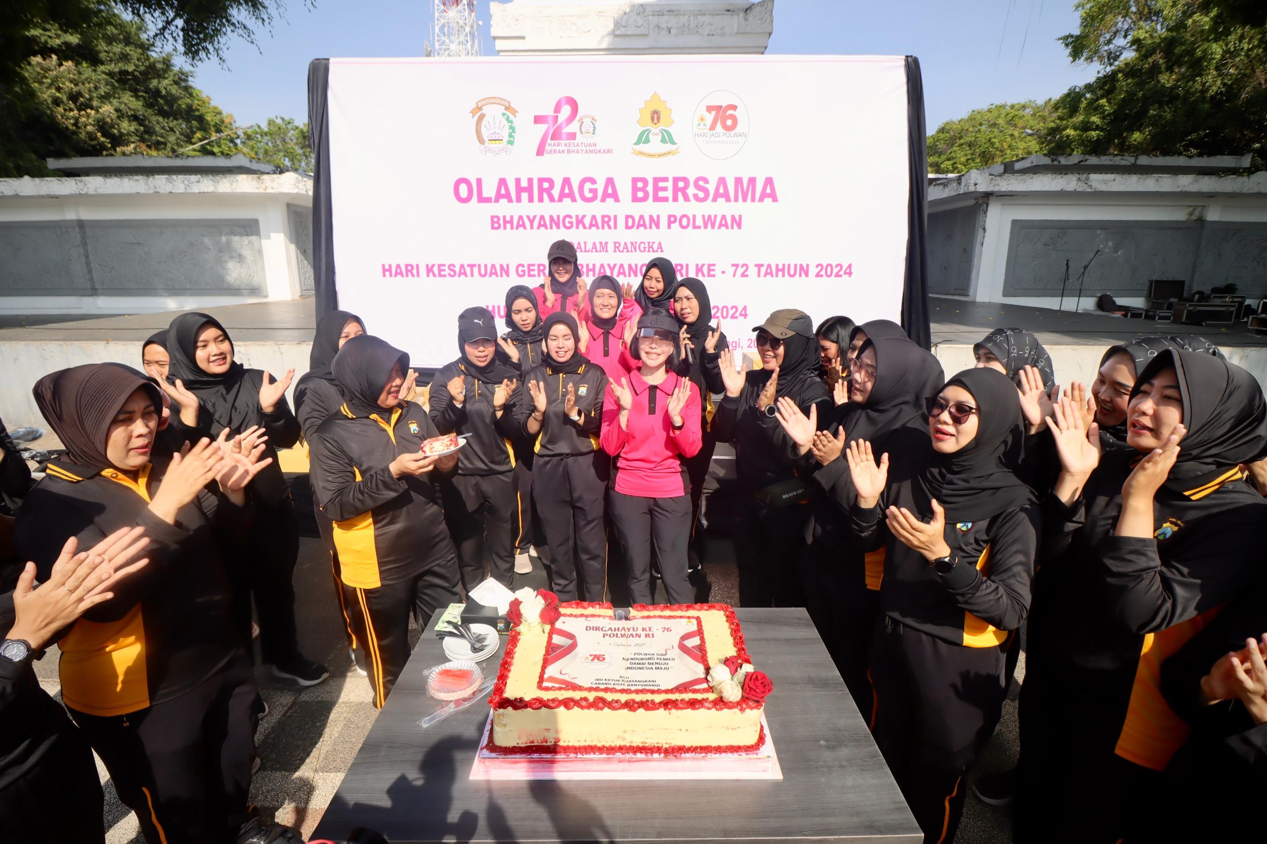 BANYUWANGI,- Liputan Warta Jatim, Puncak peringatan hari jadi Polisi Wanita (Polwan) ke -76 dan Hari Kesatuan Gerak Bhayangkari ke -72 di Polresta Banyuwangi Polda Jatim, dirayakan dengan menggelar olah raga Bersama Polwan dan Bhayangkari di Lapangan Taman Blambangan Banyuwangi. (20/9/2024)