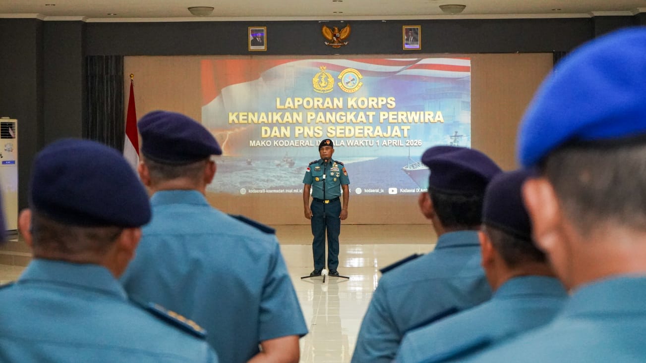 Hal tersebut dikatakan Komandan Komando Daerah TNl Angkatan Laut (Dankodaeral) lX, Laksda TNI Hanarko Djodi Pamungkas, S.H. dalam amanatnya yabg dibavakan Wadan Kodaeral lX, Laksma TNI Dr. Muhammad Risahdi pada acara Laporan Korps Kenaikan Pangkat 35 Perwira dan PNS sederajat Kalawaktu 1 April 2026 yang digelar di Gedung Manggala Loka, Kodaeral lX, Halong, Kota Ambon, Maluku, Rabu (1/4/2026).