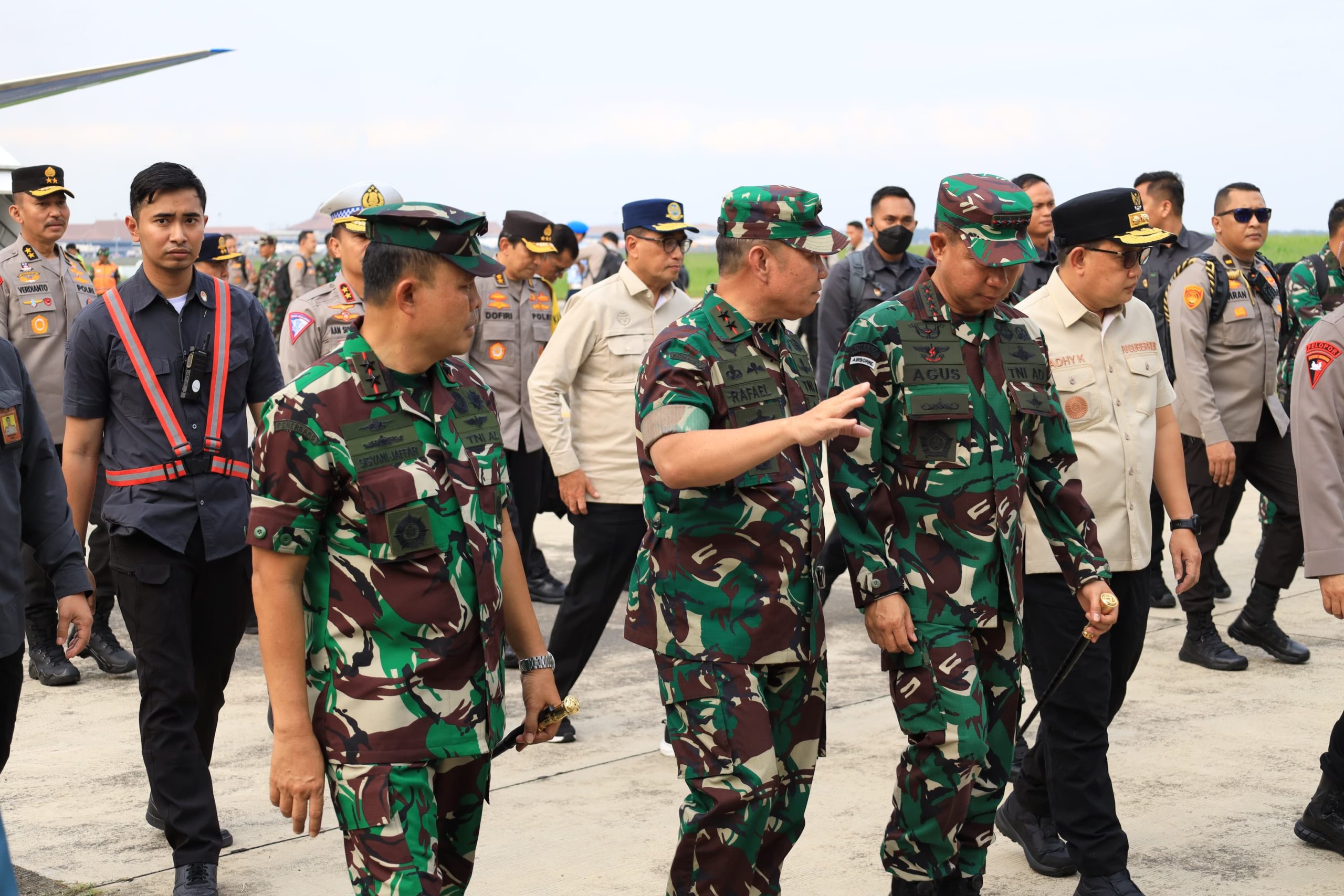 Menteri Perhubungan Budi Karya Sumadi, Panglima Jenderal TNI Agus Subiyanto dan Jenderal Polisi Listyo Sigit Prabowo beserta rombongan tiba di Base Ops Lanudal Juanda dengan menggunakan pesud Boeing 737-800NG (P-7301) dengan Pilot AKBP Helmy dari Base Ops Lanud I Gusti Ngurah Rai Denpasar, Bali.