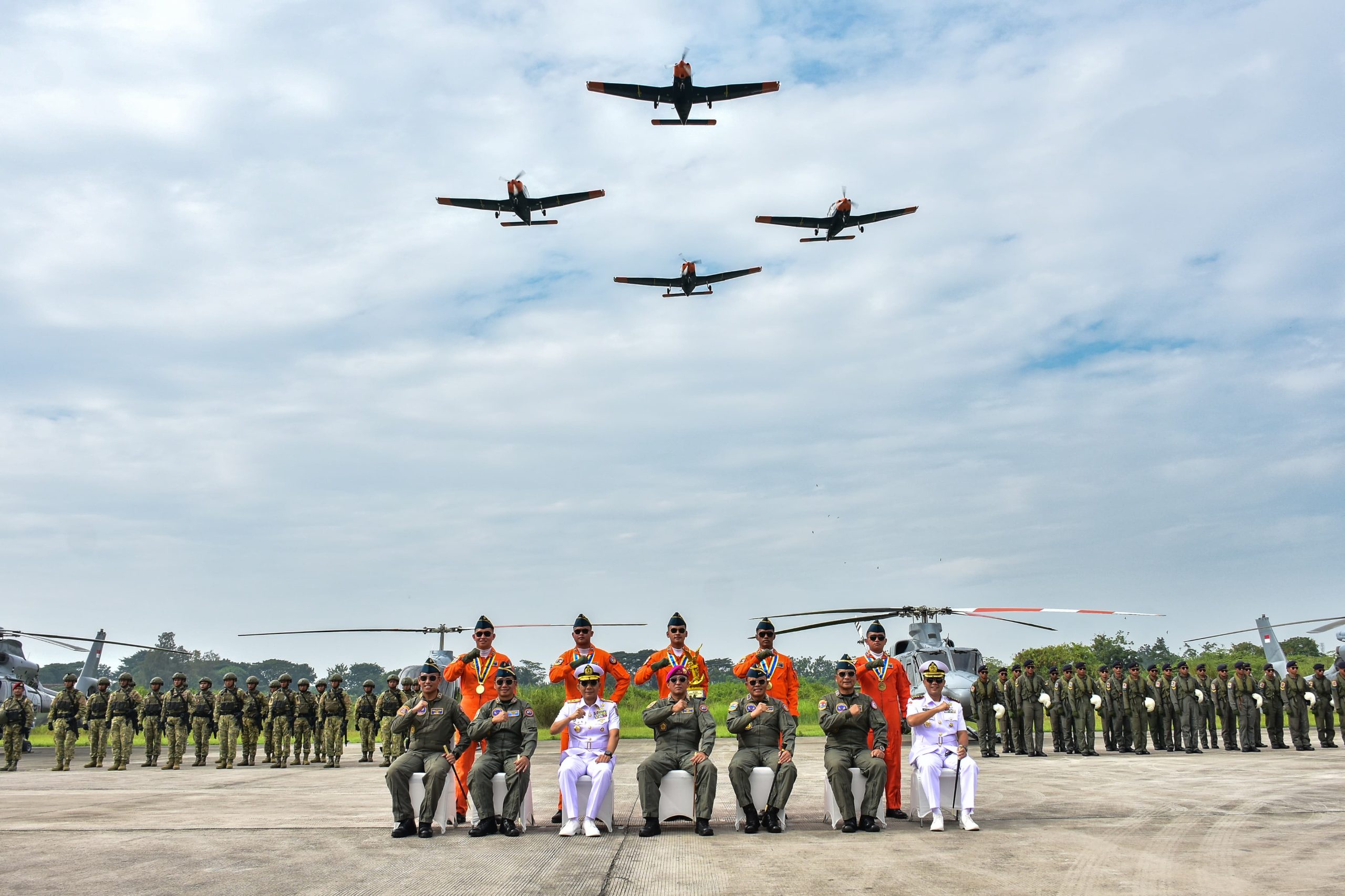Penyematan Brevet Penerbang kepada lima Penerbang baru tersebut, disambut flypass Archer Flight yang terdiri atas empat pesawat udara Piper Archer DX dari Skuadron Udara 200 Wing Udara 2 Puspenerbal yang membentuk formasi diamond.