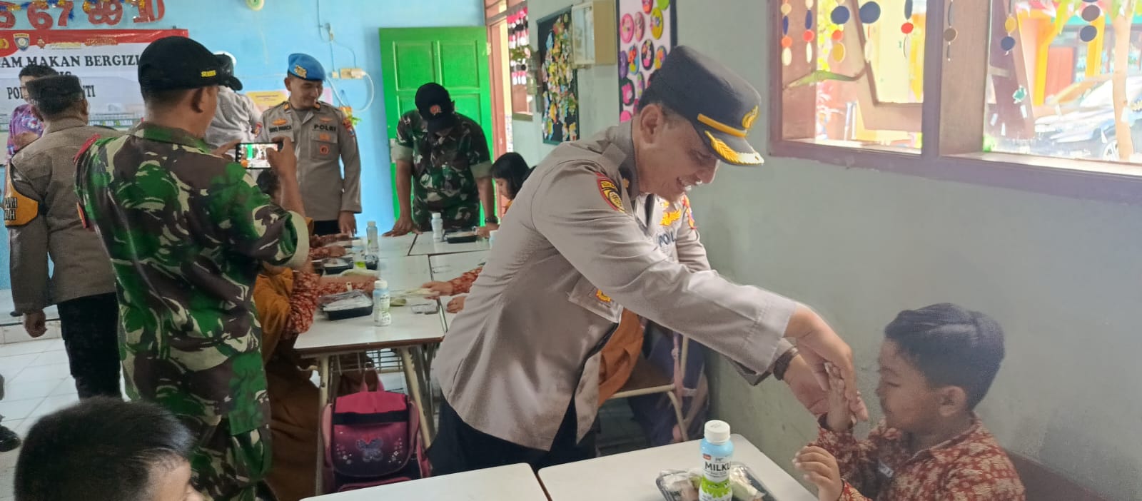 GRESIK – Liputan Warta Jatim, Mendukung program Asta Cita Presiden Prabowo Subianto, Polres Gresik menggelar kegiatan Makan Bergizi Gratis (MBG) bagi siswa UPT SDN 229 Gresik, yang berlokasi di Dusun Bibis, Desa Beton, Kecamatan Menganti, Kabupaten Gresik. Kamis (13/02/2025).