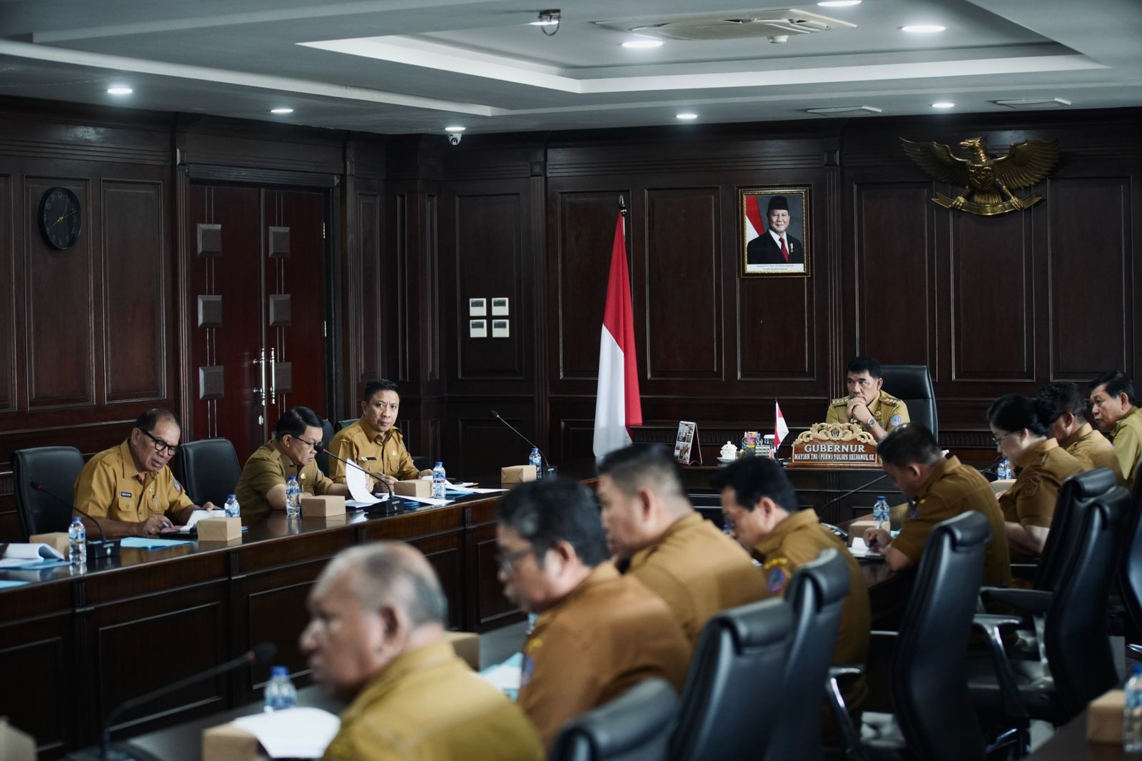 MANADO– Liputan Warta Jatim, Pemerintah Provinsi Sulawesi Utara menggelar Rapat Evaluasi dan Pengawasan Realisasi Anggaran (EPRA) APBD Tahun Anggaran 2025 di ruang rapat Kantor Gubernur Sulut, Senin (14/10/2025). Rapat penting ini dipimpin langsung oleh Gubernur Sulawesi Utara, Yulius Selvanus SE, sebagai langkah strategis memastikan seluruh program dan kegiatan berjalan sesuai target serta memberi manfaat nyata bagi masyarakat Sulut.