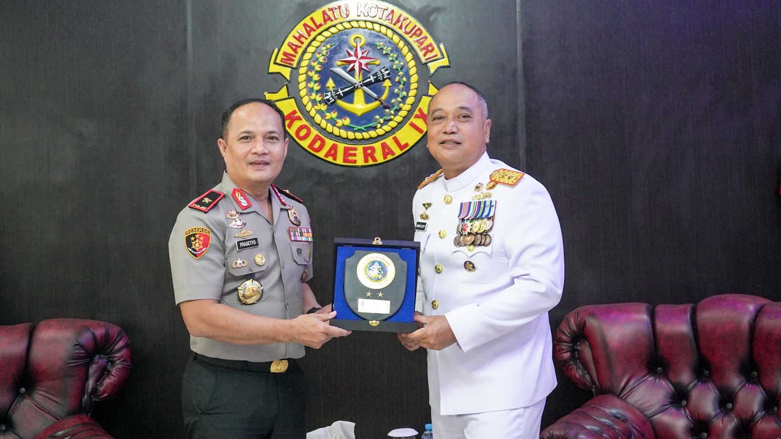 Sementara itu Komandan Kodaeral lX beserta staf mengucapkan selamat kepada Brigjen Pol. Prasetyo Rachmat Purboyo atas pelantikan sebagai Kepala BNNP Maluku.