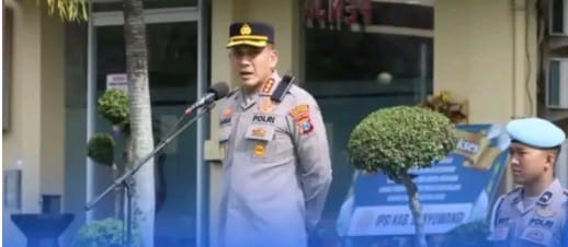 Banyuwangi – Liputan Warta Jatim, Kapolresta Banyuwangi Kombes Pol.Rama Samtama Putra,S.I.K.,M.Si.,M.H.memimpin Jam Apel yang di gelar di halaman Mako Polresta Banyuwangi senin ( 15-12-2025)