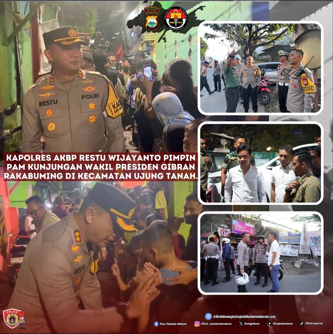 HUMDER — Liputan Warta Jatim, Kapolres Pelabuhan Makassar, AKBP Restu Wijayanto, memimpin langsung jalannya pengamanan dalam kunjungan Wakil Presiden Republik Indonesia, Gibran Rakabuming Raka, yang melakukan “blusukan” ke Kecamatan Ujung Tanah, Kota Makassar