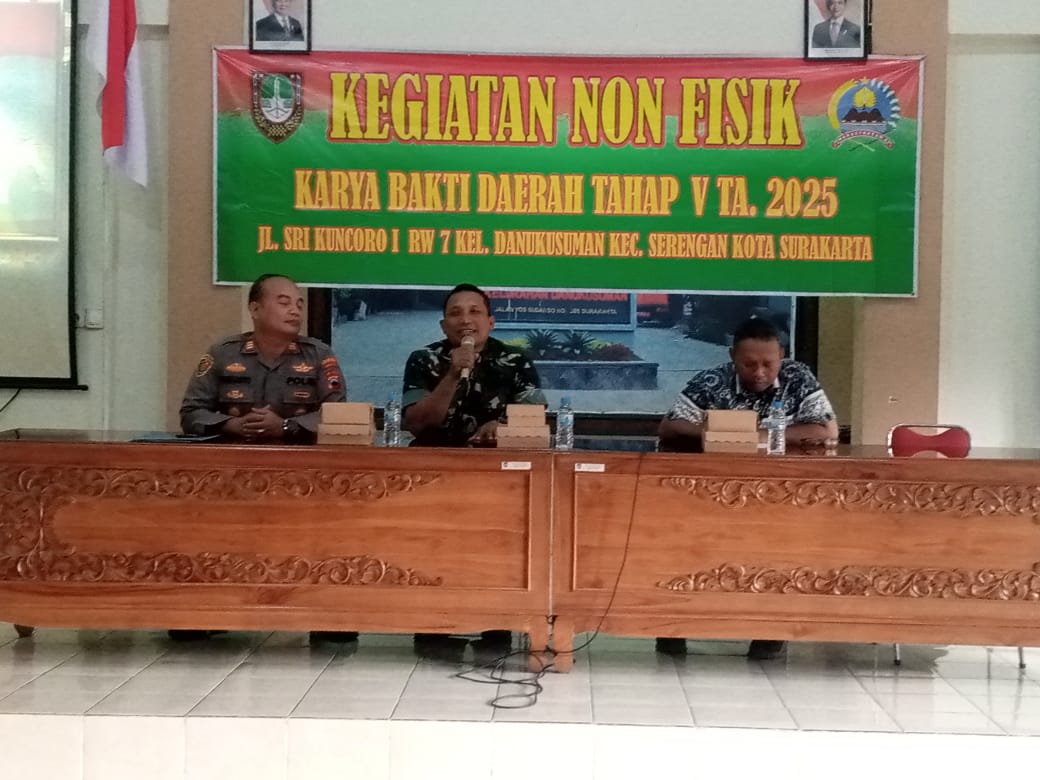 Surakarta – Liputan Warta Jatim, Danramil 03/Serengan Kapten Cba Tri Rusman Prasetyo S.Sos memberikan penyuluhan tentang wawasan kebangsaan dan bela negara kepada warga di Pendopo Kelurahan Danukusuman Serengan Surakarta, (12/09/2025).