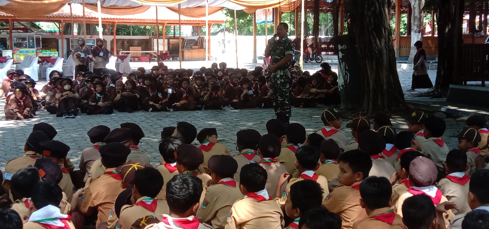 Sragen – Liputan Warta Jatim, Serma Budi Santoso Bati tuud didampingi Serka Riyanto Babinsa Saradan Koramil 02/Karangmalang Kodim 0725/Sragen memberikan materi tentang Bhinneka Tunggal Ika kepada siswa-siswi Az Zahra. Kegiatan ini bertujuan untuk menanamkan nilai-nilai persatuan dan kesatuan bangsa sejak dini.