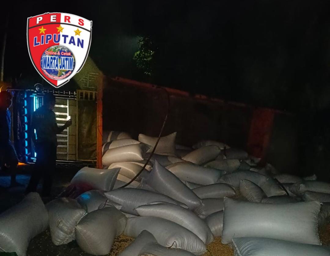 Sinjai – Liputan Warta Jatim, Mobil Pengakut Jagung Terbalik di samping Polsek Bulupoddo diatas Jembatan Batumimbalo Dusun Sahoddi Desa Lamatti Riattang Kecamatan Bulupoddo Jum’at malam (18/4/2025)