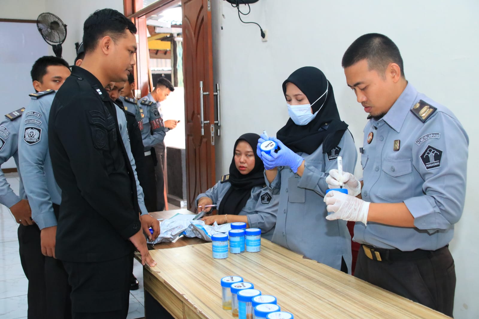 Banyuwangi – Liputan Warta Jatim ll Puluhan pegawai Lembaga Pemasyarakatan (Lapas) Kelas IIA Banyuwangi jalani tes urine, Kamis (5/12). Kegiatan yang dipimpin langsung oleh Kepala Lapas Banyuwangi, Agus Wahono itu digelar secara mendadak sebelum pelaksanaan rapat dinas.