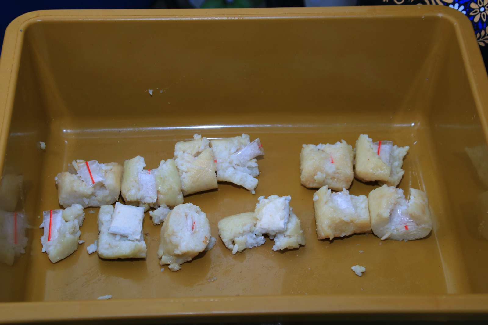 “Saat dilakukan penggeledahan, petugas mendapati satu paket kecil berisi serbuk kristal putih yang telah diselipkan dalam lontong, setelah diteliti lebih lanjut ditemukan total 12 paket yang diduga berisi sabu,” ujar Wayan.