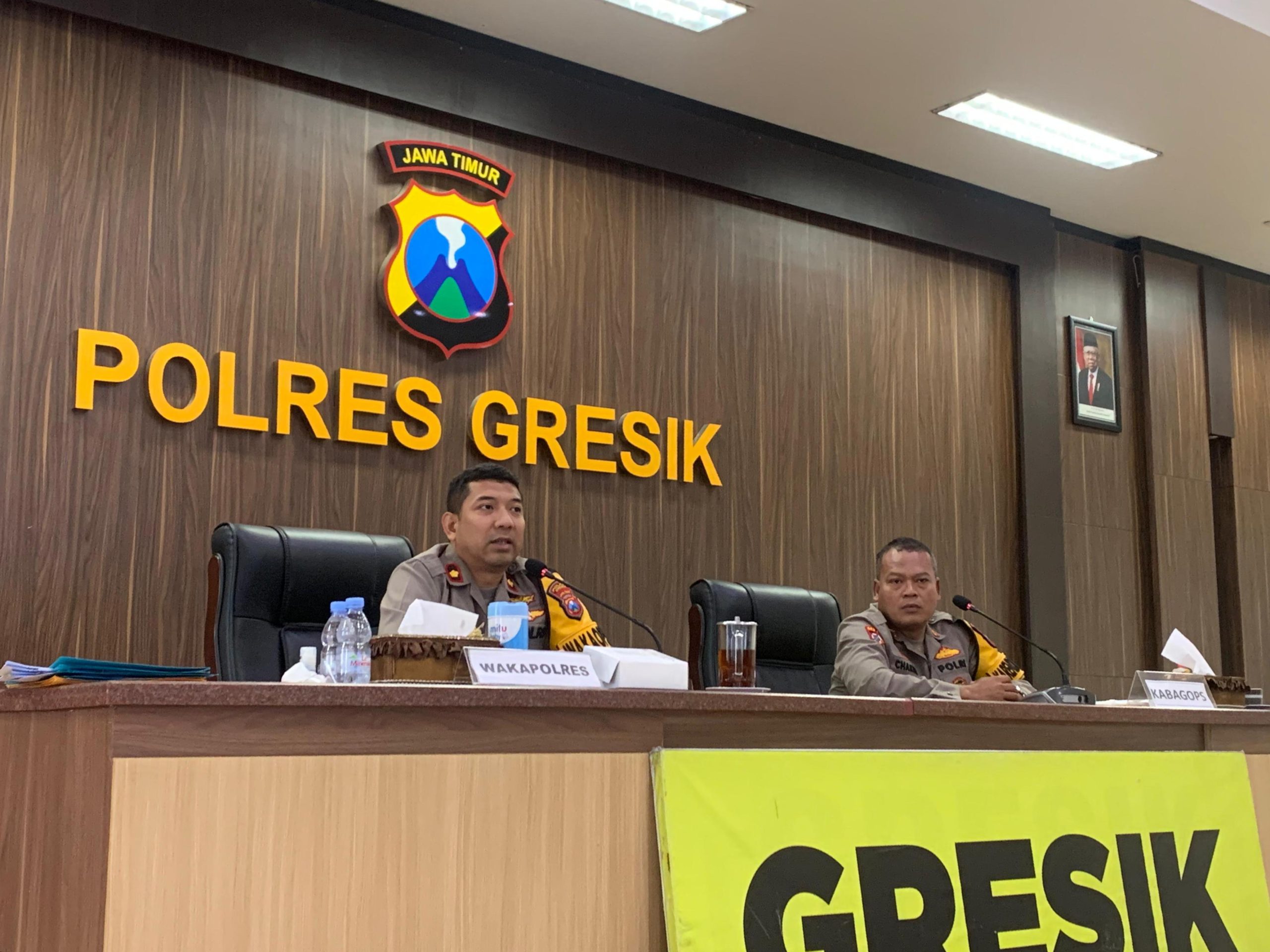 Rapat dipimpin Wakapolres Gresik Kompol Danu Anindhito Kuncoro, Kabagops AKP Chakim Amrullah, dan Kasatlantas AKP Derie Fradesca PJU dan personil Polres Gresik.