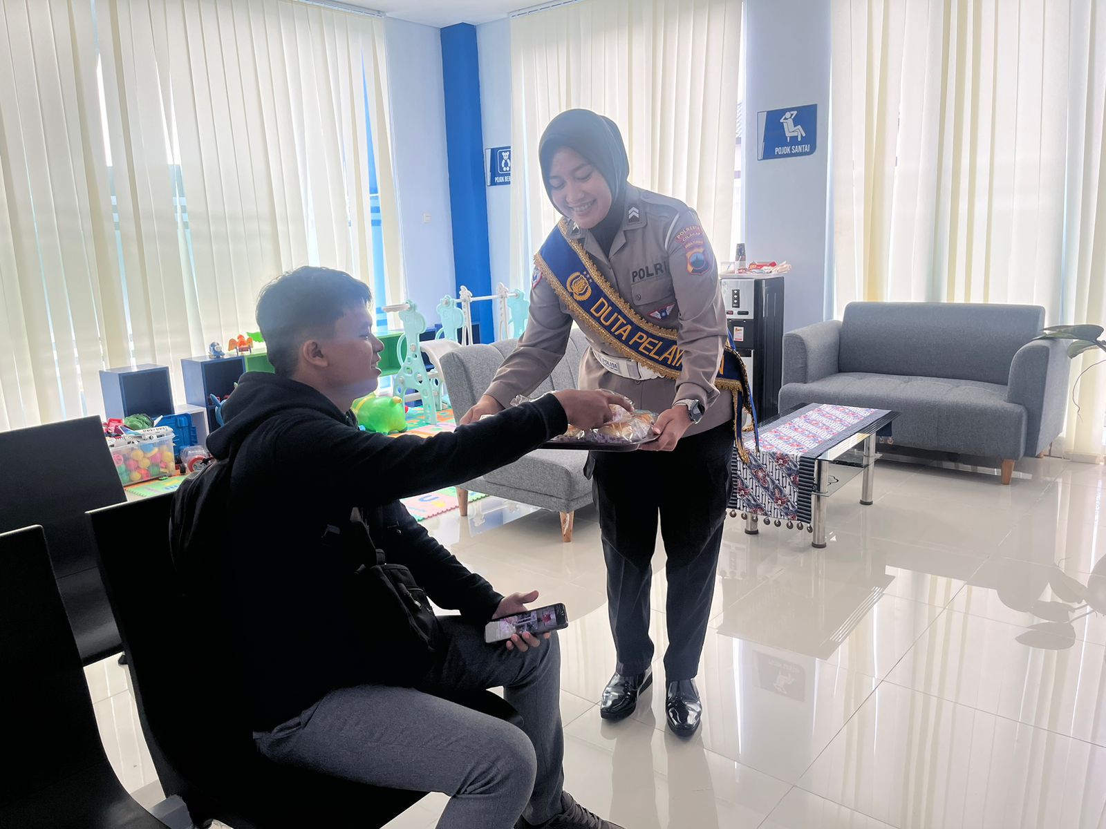 Cilacap – Liputan Warta Jatim, Briptu Siti, Unit BPKB Polresta Cilacap, memberikan snack kepada masyarakat yang tertib pajak dan taat administrasi kendaraan yang sedang menunggu antrian di kantor Samsat. Sabtu, 8/11/2025.