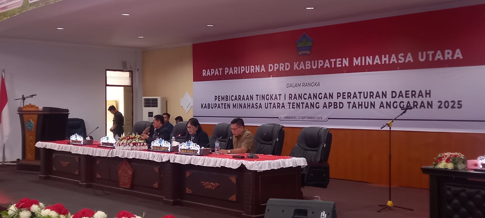 MINUT – Liputan Warta Jatim, Rapat Paripurna DPRD Kabupaten Minahasa Utara dengan tema “Pembicaraan Tingkat I Rancangan Peraturan Daerah Kabupaten Minahasa Utara Tentang APBD Tahun Anggaran 2025 di ruang rapat kantor DPRD Kabupaten Minahasa Utara. Jumat,13/09/2024.
