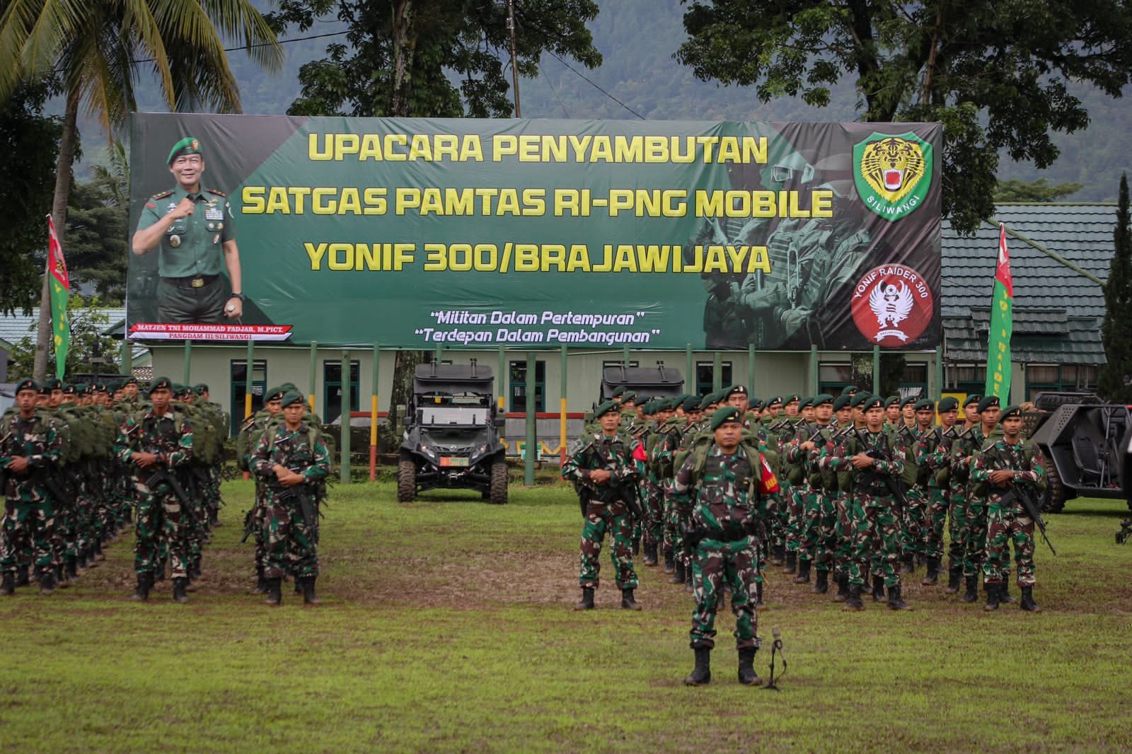 Pangdam III Siliwangi sebagai Inspektur Upacara Penyambutan, memberikan penghormatan kepada Satgas Yonif 300 Brajawijaya atas dedikasi, pengabdian dan pengorbanan seluruh Prajurit Siliwangi di penugasan. Selain itu, beliau juga berkesempatan untuk berkeliling Komplek Asrama dengan kendaraan taktis ATAV P6 sekaligus meresmikan ruang makan “Kelabo Ilaga” yang baru selesai dibangun.