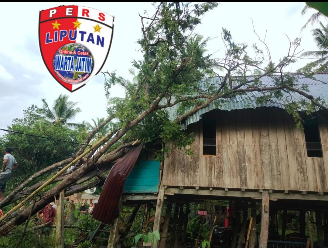 Pohon tumbang tersebut disebabkan akibat hujan deras disertai angin yang mengguyur wilayah tersebut sehingga mengakibatkan tumbang dan Akibat pohon tumbang tersebut Menimpa Rumah warga An Nasir (57 TH) Pekerjaan Petani.