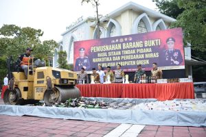 Konferensi pers akhir tahun tersebut ditutup dengan pemusnahan barang bukti berupa knalpot brong, narkotika, dan ribuan botol minuman keras. Pemusnahan dilakukan langsung oleh Kapolres Gresik bersama jajaran Forkopimda menggunakan alat berat.