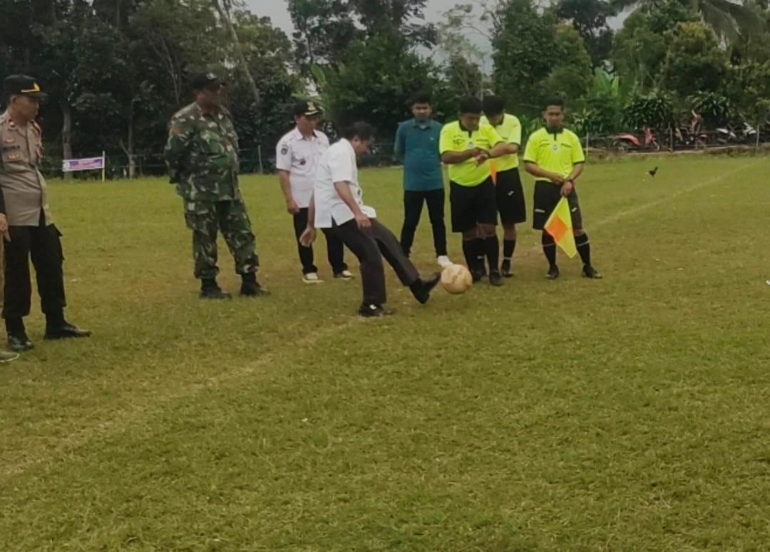 Dengan Melakukan Tendangan Bola Pertama oleh Camat bulupoddo sebagai Simbol di mulainya Pertandingan Perdana Yang di ikuti 8 Tim Terdiri dari Karang Taruna dan Desa.