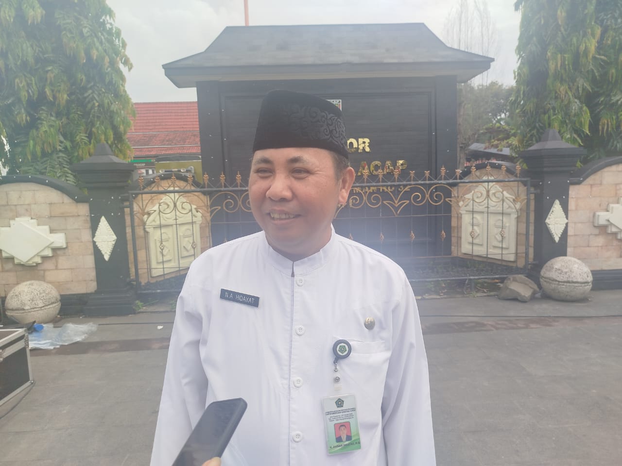 Nasrun Anwar Hidayat Kasi Pendidikan Diniyah dan Pondok Pesantren Kantor Kementrian Agama Kabupaten Cilacap memberikan keterangan usai upacara. Bahwa kegiatan hari ini sudah dirapatkan oleh Kementerian Agama dengan Pemerintah Kabupaten Cilacap.