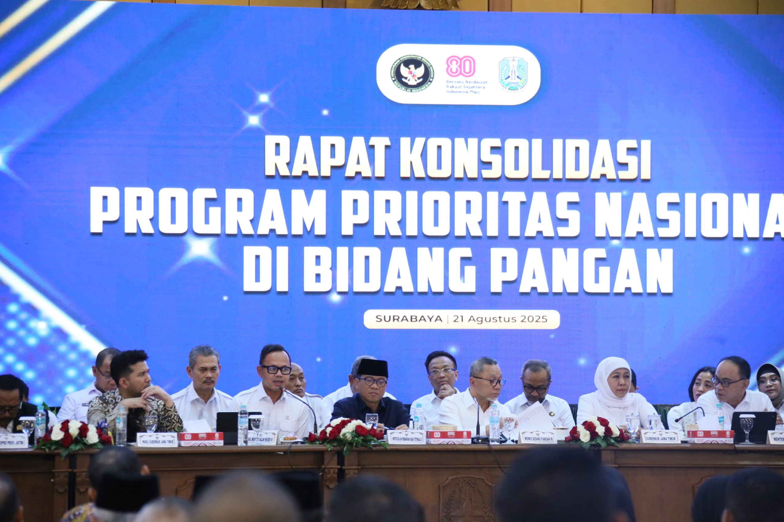 Hal ini disampaikan Bima saat menghadiri Rapat Konsolidasi Program Prioritas Nasional di Bidang Pangan, yang digelar di Kantor Gubernur Jawa Timur, Surabaya, Kamis 21 Agustus 2025.