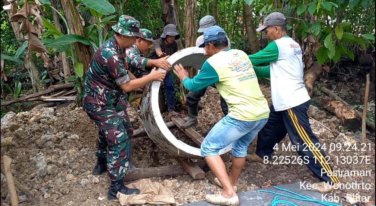 Blitar – Liputan Warta Jatim, Dalam upaya mewujudkan lingkungan yang sehat dan layak huni, anggota Pos Wonotirto Koramil 0808/09 Sutojayan bersama masyarakat bergotong-royong membantu membangun jamban yang sudah tidak layak milik Bapak Supani warga kurang mampu Dusun Kempul Desa Pasiraman Kecamatan Wonotirto Kabupaten Blitar, Sabtu (4/5/2024).