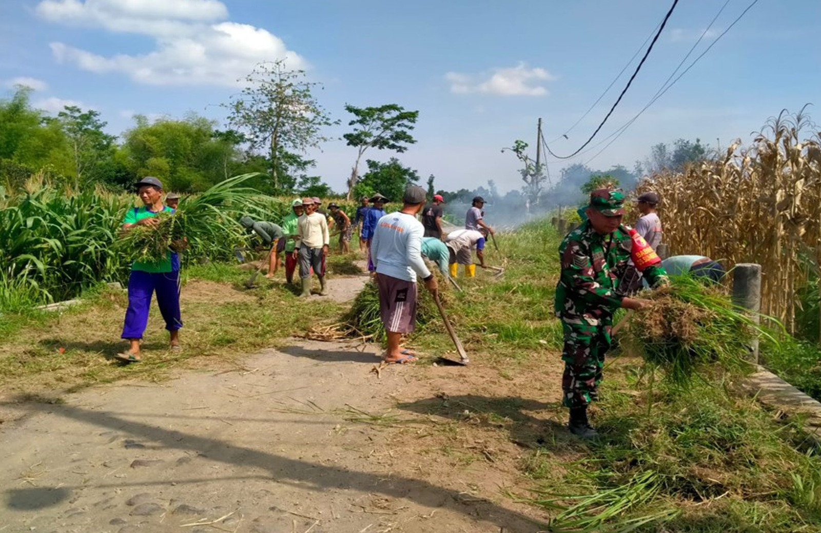 Hal itu yang mendasari Personel Bintara Pembina Desa (Babinsa) Desa Sumbesari Koramil 0808/08 Udanawu Kodim 0808/Blitar Serka Agus Supriyono mengajak masyarakat bersama sama melaksanakan gotong royong pembersihan ruas kanan kiri jalan Desa, di wilayah Dusun Pasirharjo Desa Sumbesari Kecamatan Udanawu Kabupaten Blitar, Minggu (27/10/2024).